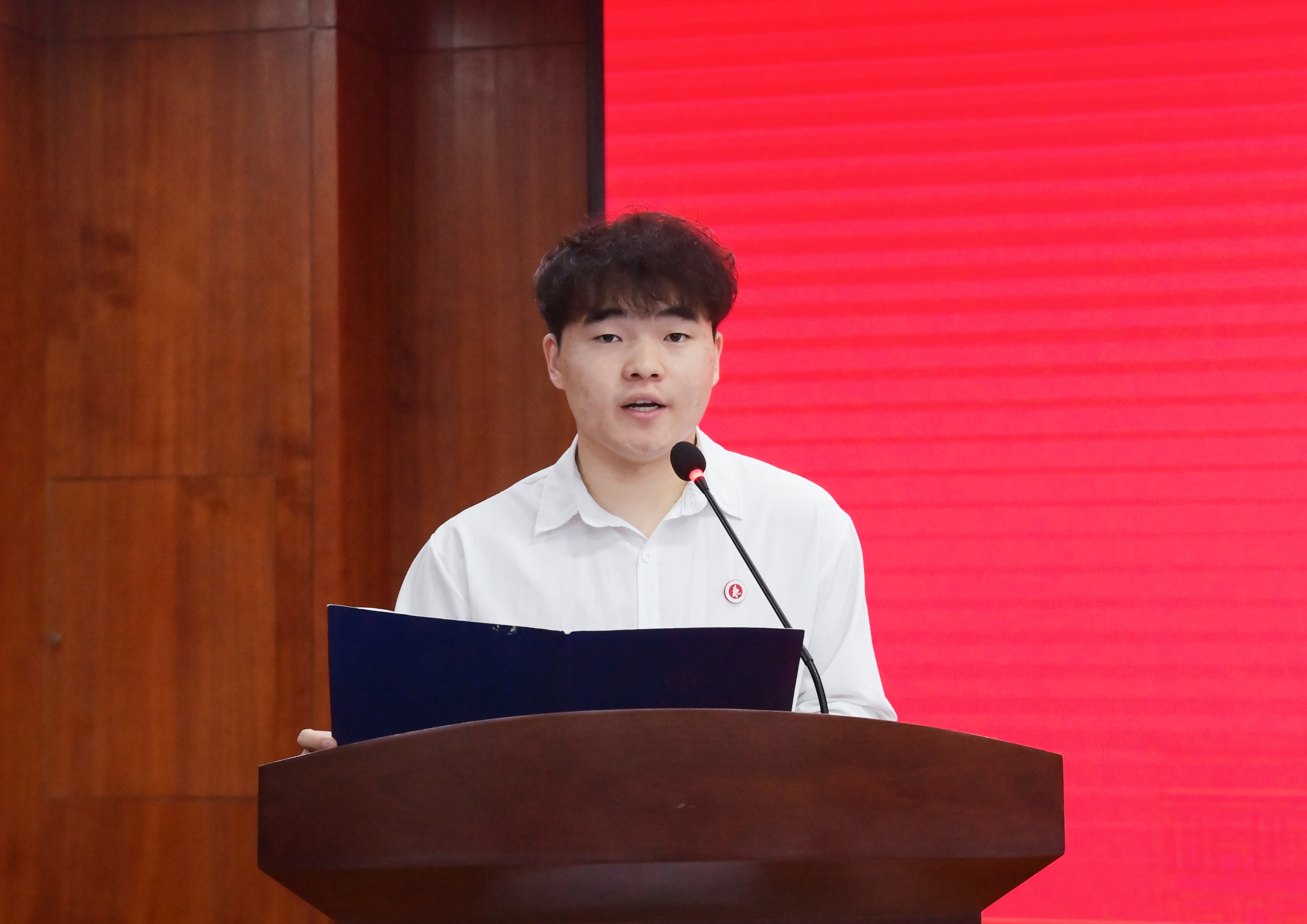 在校生代表2021级设计系陈正康同学发言,他代表成人导航