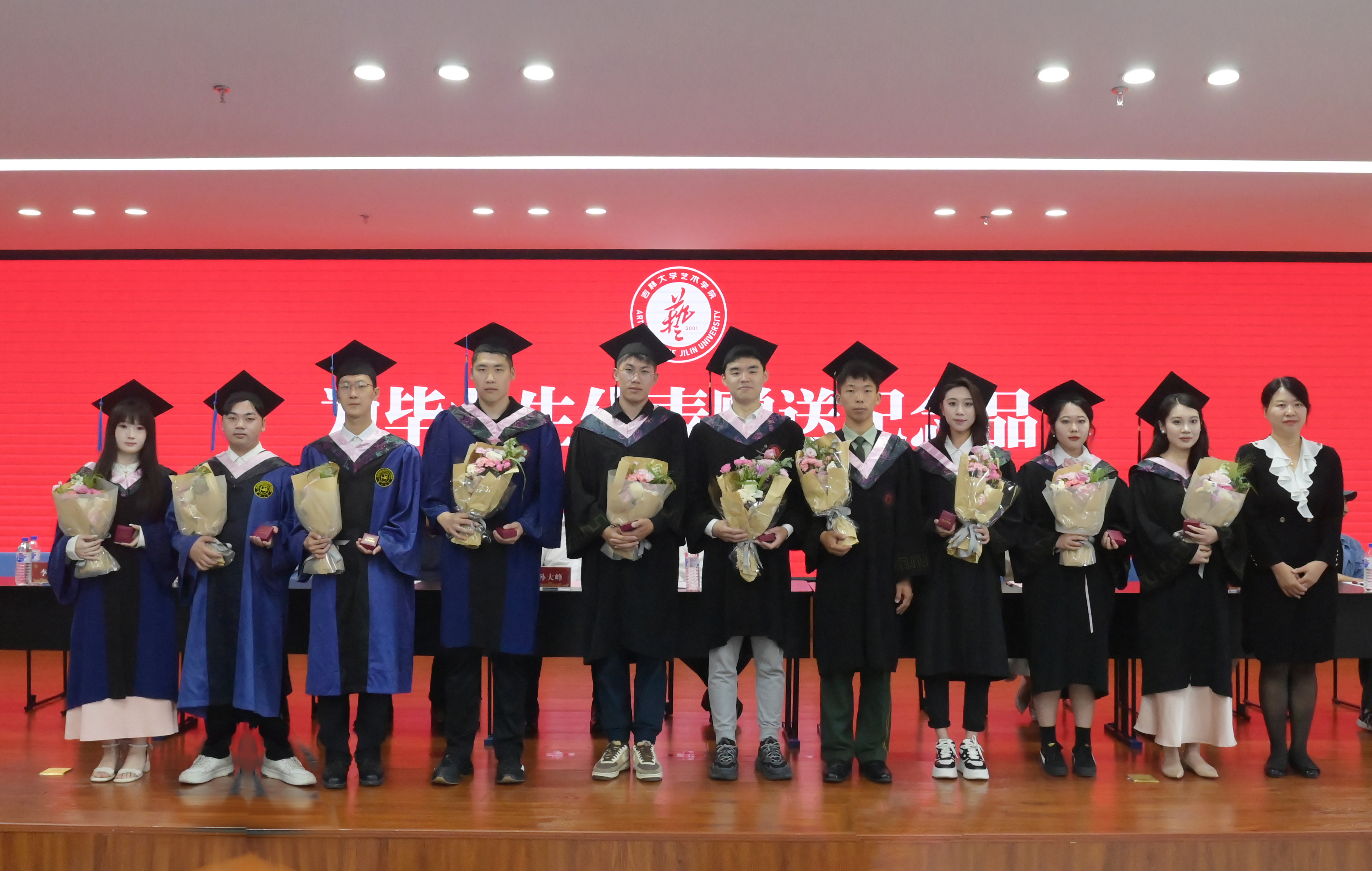 随后,冯彦杰书记为毕业生代表赠送纪念品并合影留念。纪念品为成人导航