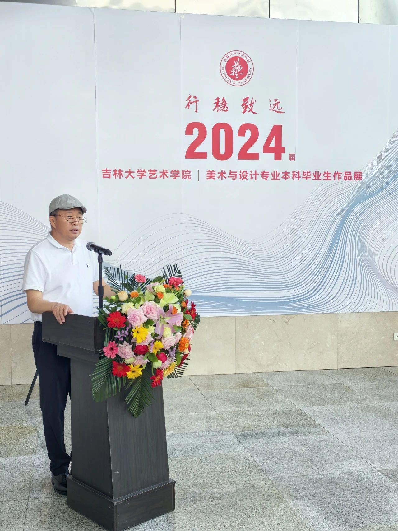 郭春方在致辞中表示,本次作品展既是同学们四年艺术学习的总结,也是成人导航