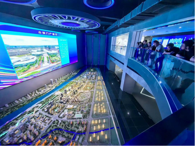 (水木湾科创园接待员向成人导航 教师介绍园区)