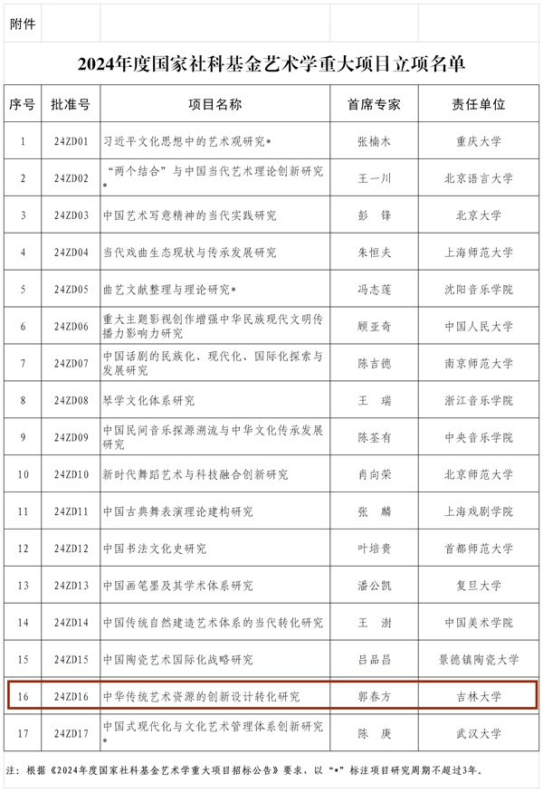 艺术学重大项目立项名单公布