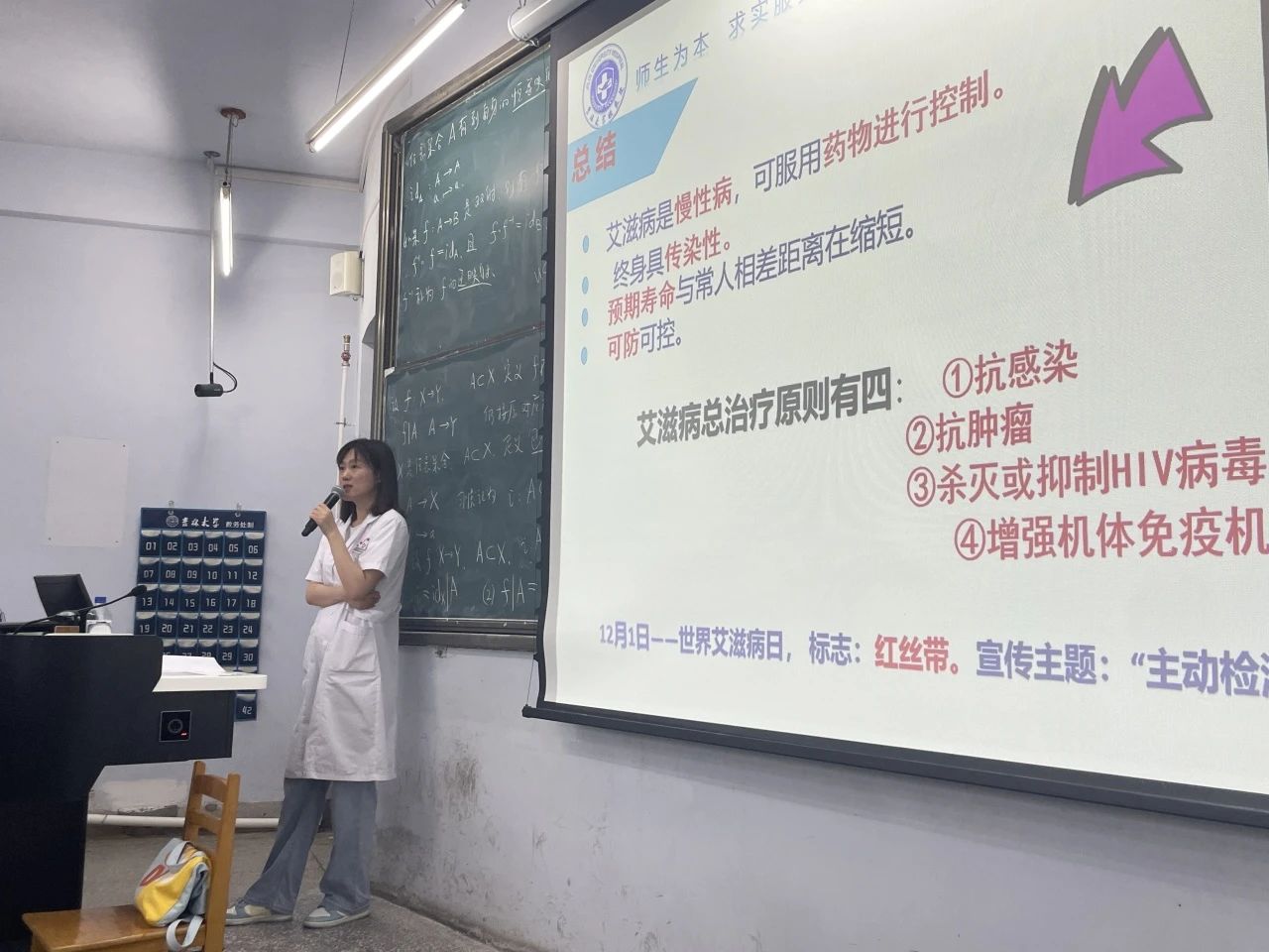 最后国佳老师为同学们讲解了传染病的防治,分别介绍了肺结核,水痘,乙肝,艾滋病这四种典型传染疾病,以及它们的临床表现,如何预防和进行治疗。国佳老师重点讲解了艾滋病的传播途径,让同学们更加重视艾滋病的传播与防治。