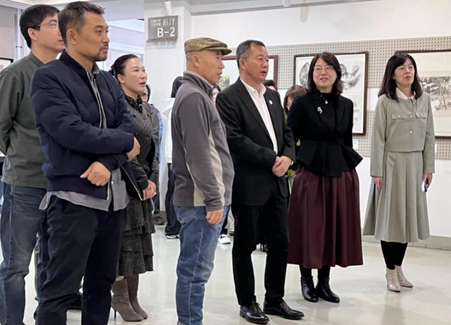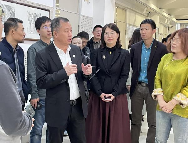 领导莅临现场指导,与师生们一同观赏作品并交流,氛围活跃和谐。