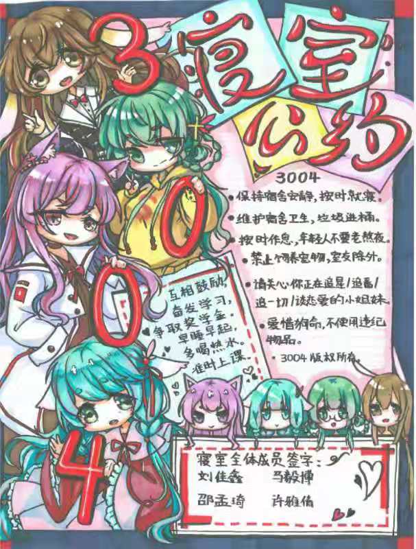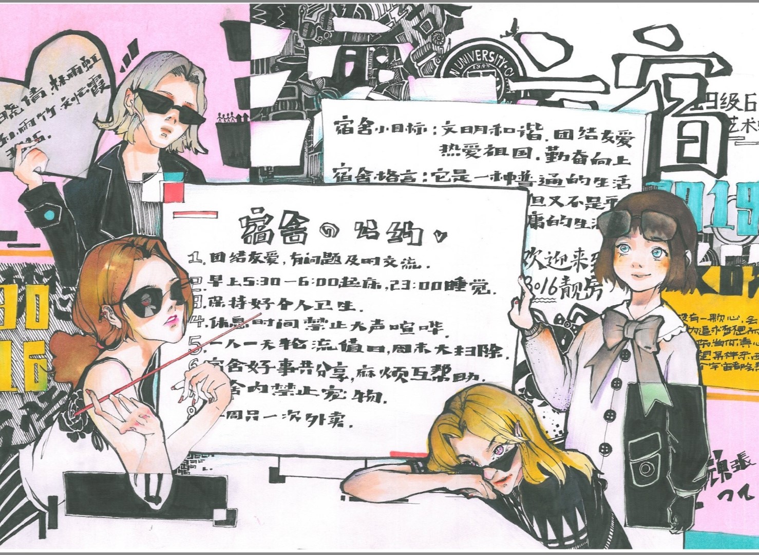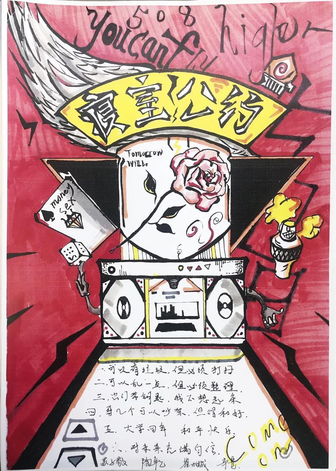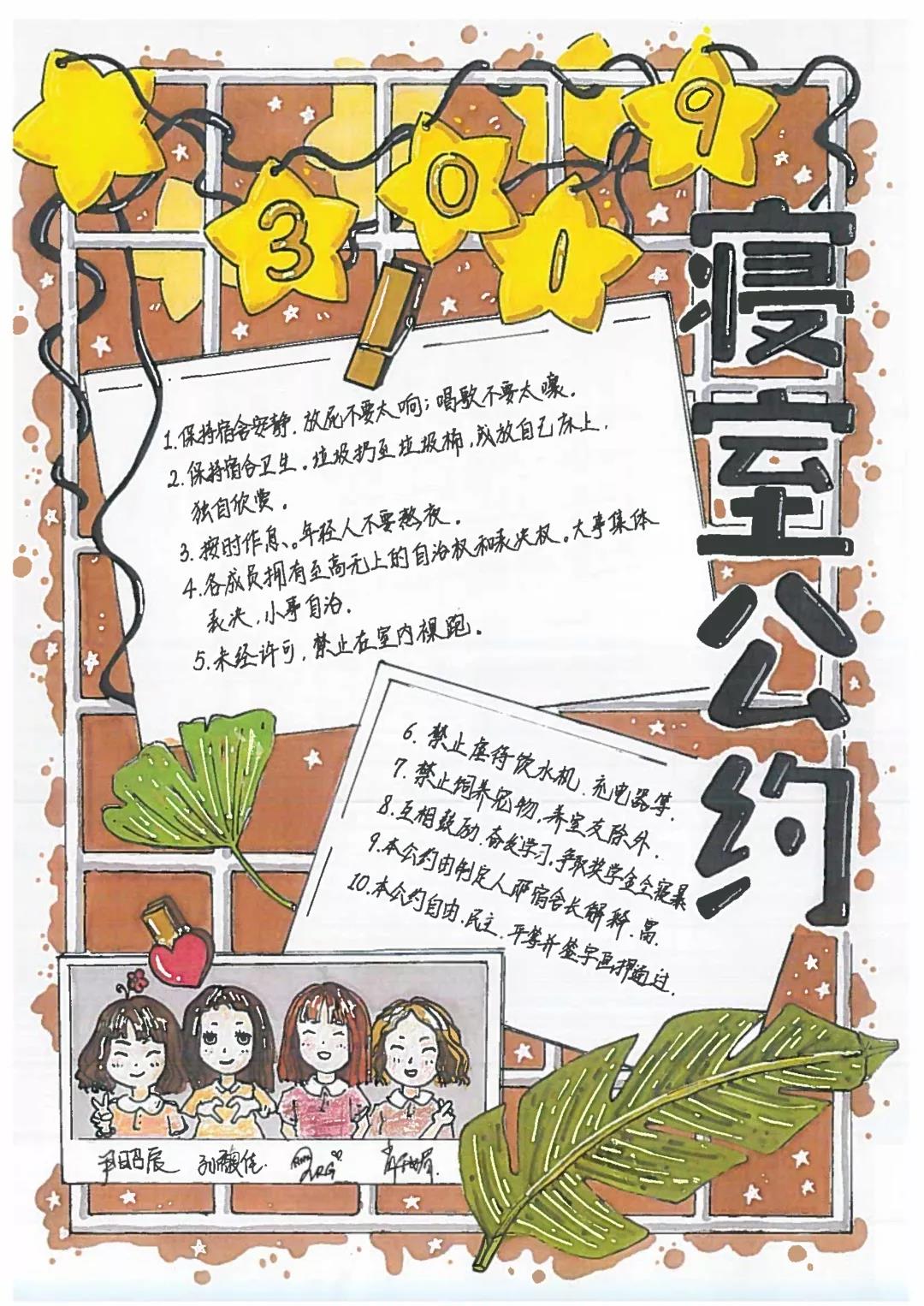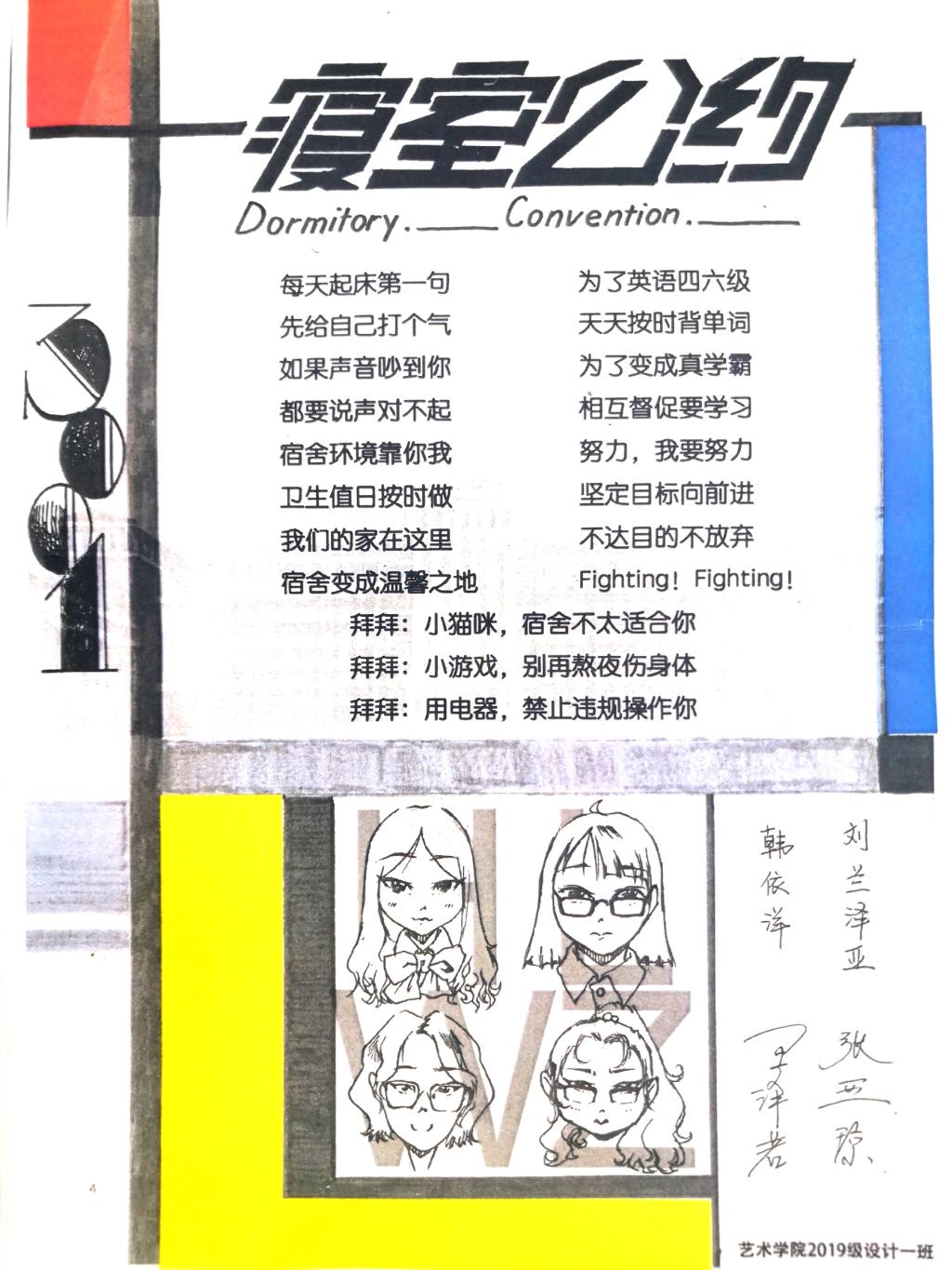 开展了《寝室公约》设计大赛。现将2018--2019年优秀作品展示如下: