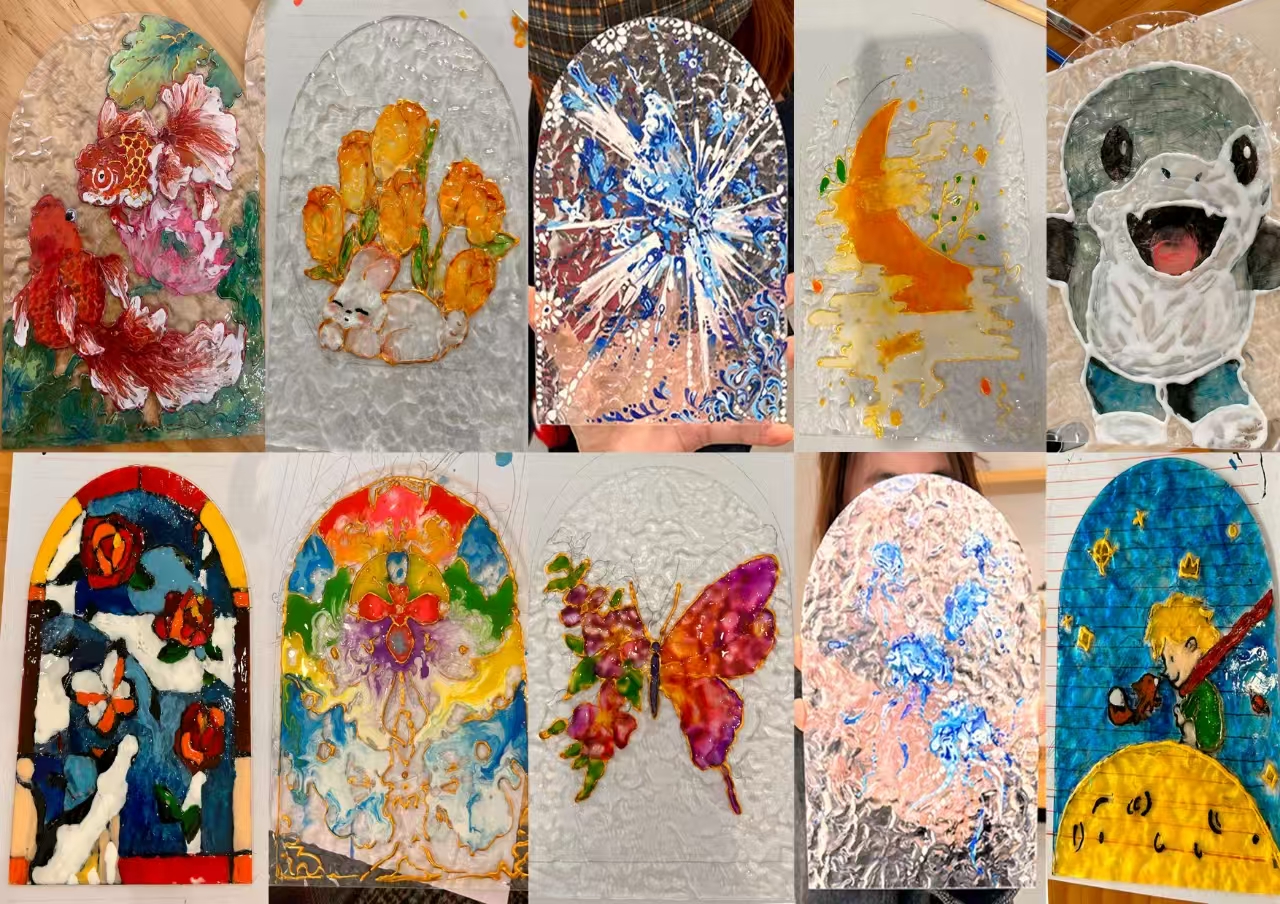 通过此次活动,同学们不仅掌握了彩绘玻璃的创作技巧,更在动手实践中感受到传统工艺蕴含的匠心精神与文化魅力,增强了对文化传承的责任感。同时也为高校学子搭建了一个跨学科交流的平台,激发了同学们的创新思维与艺术创作热情。